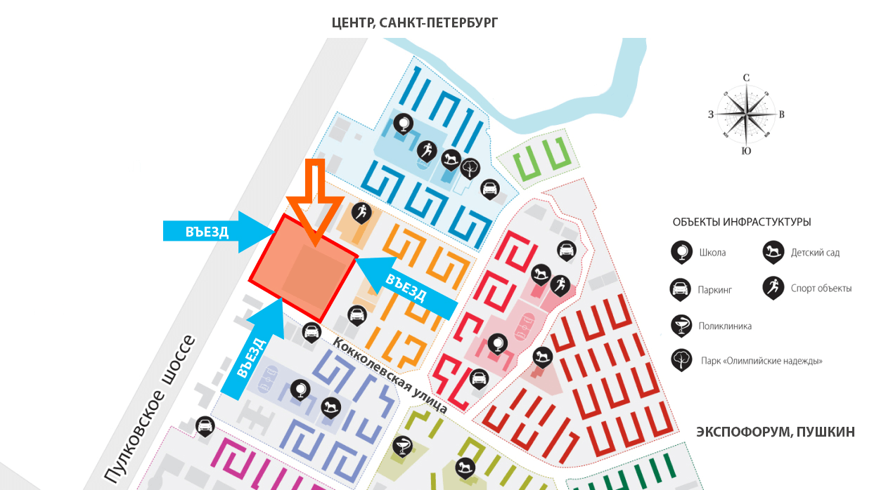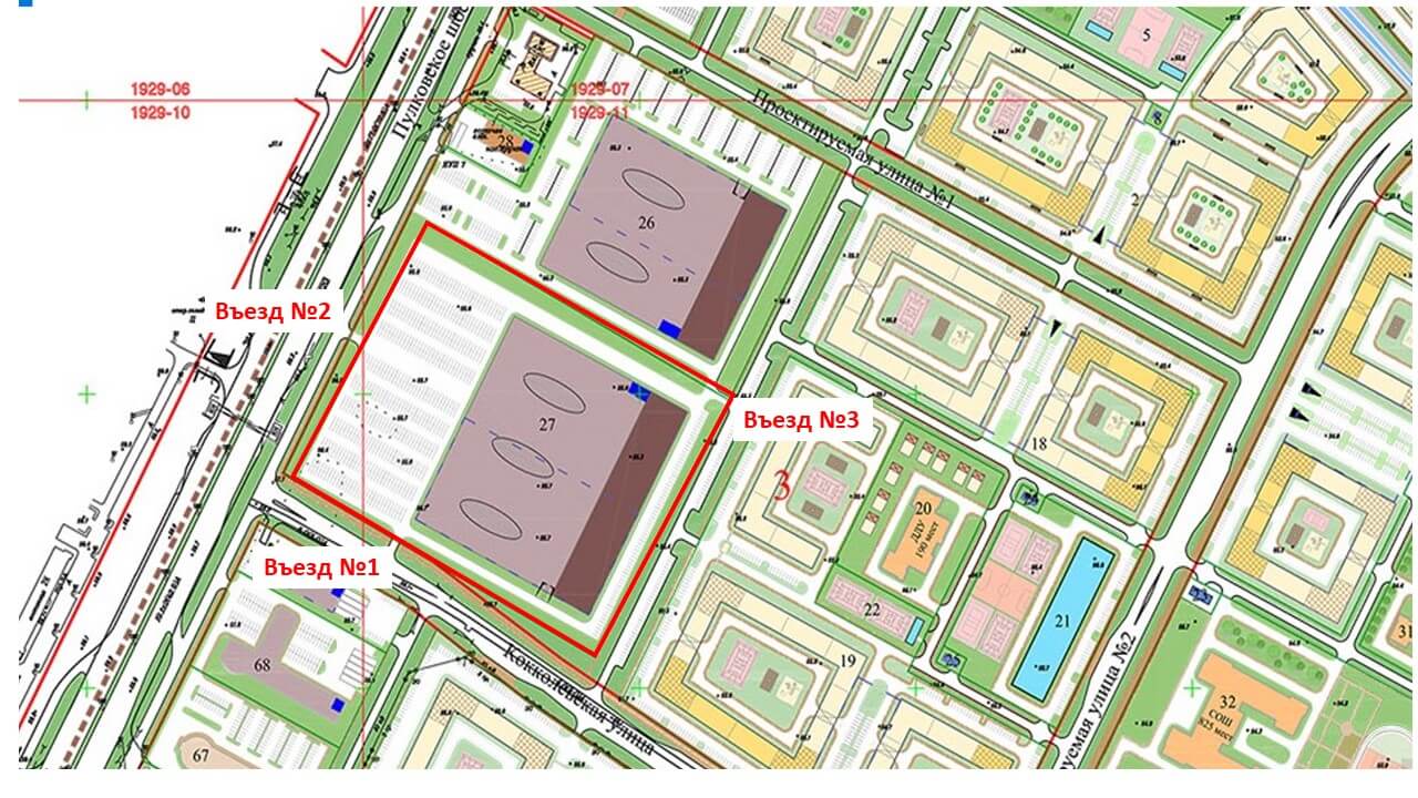 Таким образом, без учета проектируемого жилого комплекса, до 2026 года будет проживать порядка 100 000 жителей. Пешеходный трафик будет осуществлять по 2 надземным пешеходным переходам через Пулковское шоссе, один из которых находится перед участком, рядом с остановкой общественного транспорта.